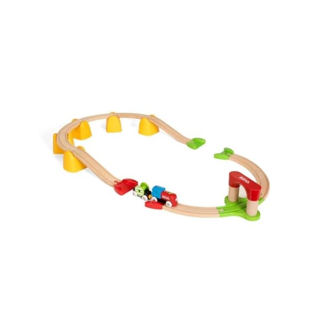 【マイファーストシリーズ】1歳半からの新しいレールウェイセット。レールセットには必要な付属品が含まれています。 充実したセットでレール遊びをより楽しむことができます。カラフルな列車でレインボーカラーの橋を渡ったりくぐったり、お好きなレイアウトにしてお楽しみください。