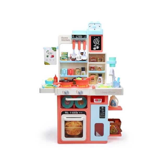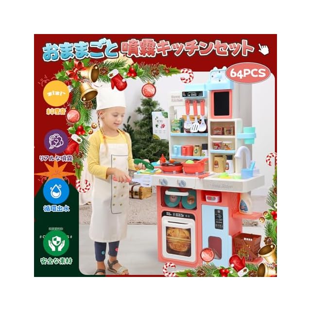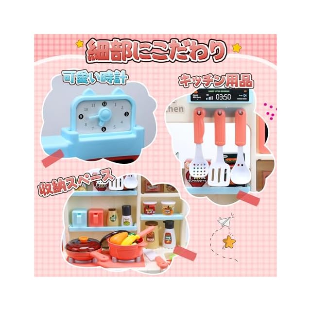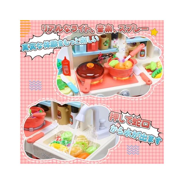 【リアルな料理雰囲気】リアルな噴霧、光り、煮音が付いており、本物に負けないぐらいマイキッチンになります。 また、蛇口は実際に水を出すことができます。子供が台所で料理のやり取りを真似し、リアルな気分を味わえ、楽しいままごと遊びを楽しめます。