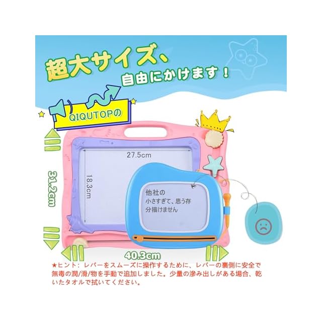 ☀【大きなサイズ】本体サイズは40.3×31.2×4cm、描く部分は27.5×18.3cmです。広々としたスペースで思う存分描くことができます。