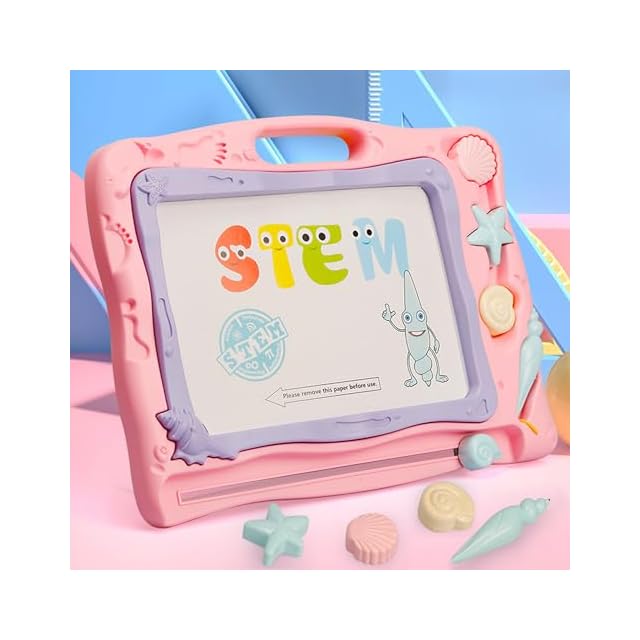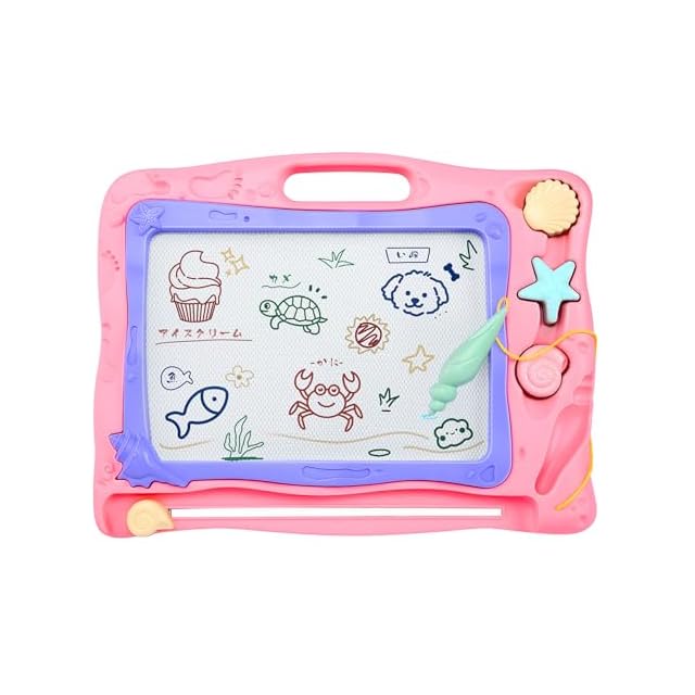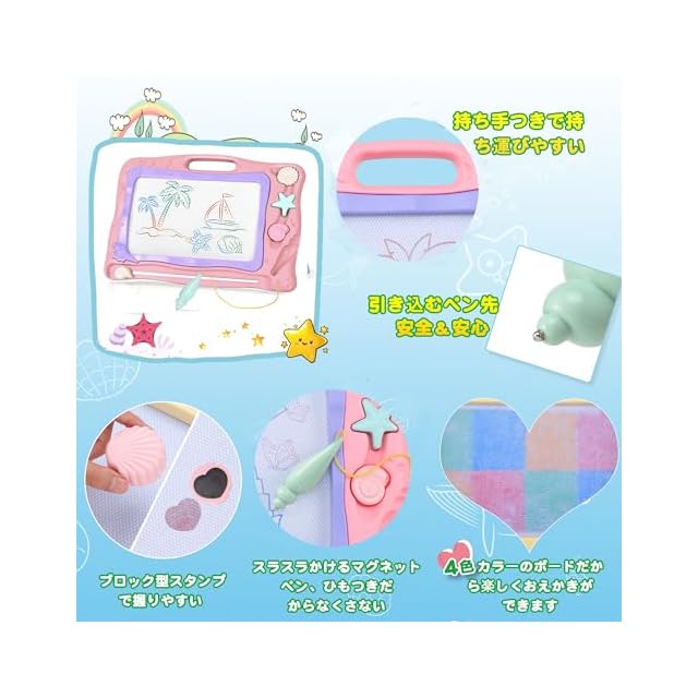 お絵描きボード カラフル おえかきボード Qiqutop おえかき 大きい 40.3*31.2cm 子供 お絵かきボード落書きボード 知育 四色 3 4 5歳 男の子 女の子 誕生日 プレゼント 幼児 おもちゃ マグネットスタンプ付 (ピンク) | つむぎ屋