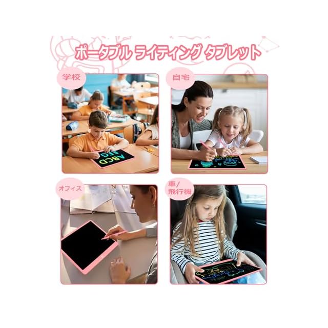 軽量でポータブル: 16 インチの LCD 落書きボードは、ハンドバッグやバックパックに入れて持ち運べるほど軽量でポータブルです。子供用お絵かきパッドは、学校、車、飛行機、アウトドアなど、さまざまな場面に適した、旅行に欠かせないアイテムです。