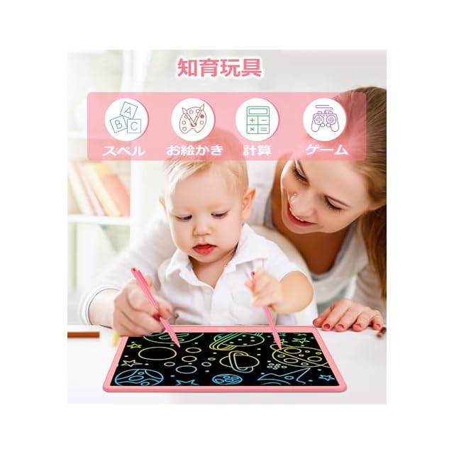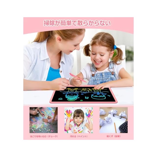 電子メモパッド 16インチなカラフルな落書きドローイングパッドゲームプレイボードおもちゃ お絵描きボード 大画面デジタルメモ 高輝度 ロック機能搭載 書いて消せるボードお絵かきボード 筆談ボード 電池交換可能 LCD電子メモ帳 手書きパッド 伝言ボード 家族の掲示板/ビジネスのメモ/仕事のプラン/子供のお絵かき/学習の下書き/誕生日/子供知育玩具/人気ギフト (ピンク) | つむぎ屋