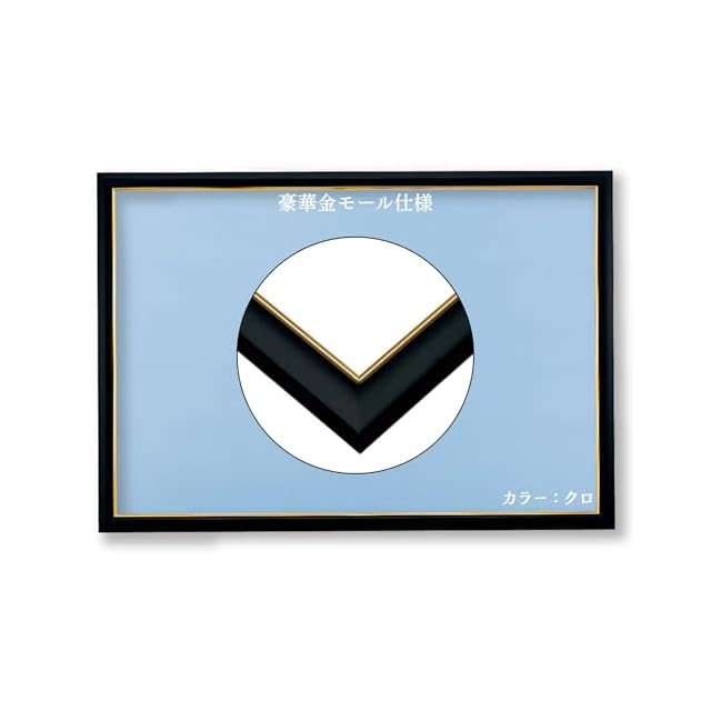 ビバリー 【日本製】 【壁かけひも付】 木製ゴールドモール付パズルフレーム 51×73.5cm(パネル№10-T) ブラック(黒) 【UVカット仕様/工具不要】 ゴールドモール木製パネル ジグソーパズルフレーム 額縁 MP107K
