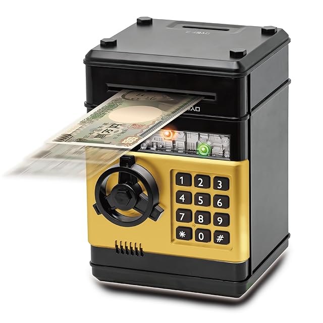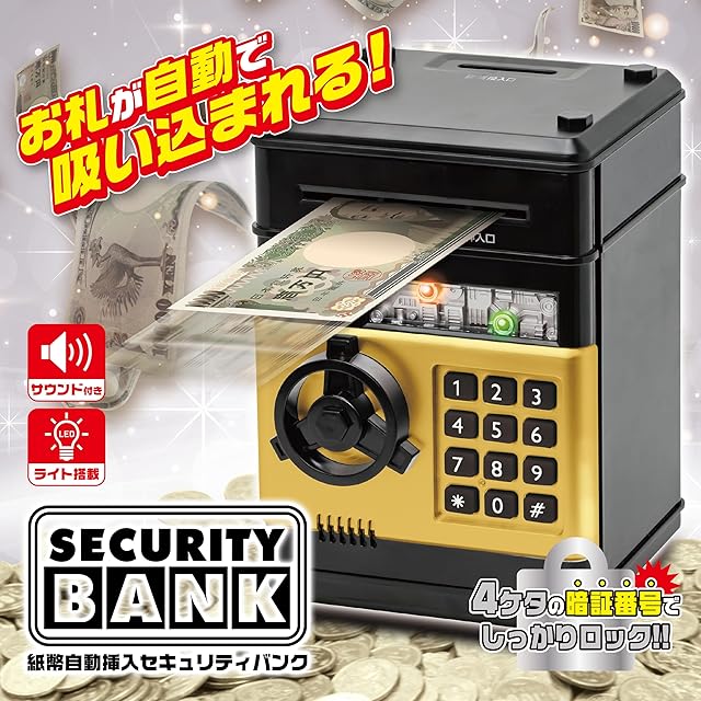 YSN 紙幣自動挿入 セキュリティパスワードバンク BANK 自動挿入 貯金箱 紙幣 お札 パスワード セキュリティ サウンド付 安心機能搭載 おもしろ バラエティグッズ プレゼント 紙幣貯金 (黒×金) | つむぎ屋