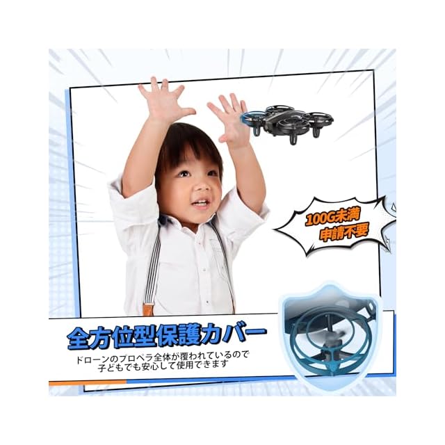 【360°全周プロペラガードで安心設計】TOMZON トイドローンは全方位プロテクションガードが機体とお子様の安全を両立。衝突時の衝撃吸収に加え、プロペラへの誤接触を防止します。人間工学に基づいた設計のリモコンで、快適な操作性を実現しました。