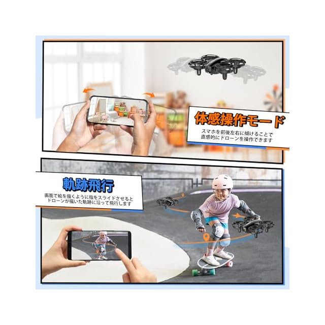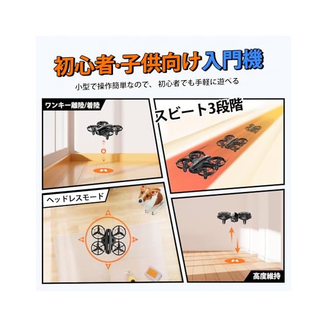 【子ども・初心者に優しい入門機】TOMZON 小型ドローンはドローンを放り投げるだけで自動的に離陸できる手投げ離陸機能、ボタン一つで自動的に離陸・着陸ができるワンキー離着陸機能、操縦者視点で操作できるヘッドレスモード、ドローンが自動的にホバリングできる高度維持機能、操縦モード切替など便利な機能があり、子供でも初心者でも簡単にドローンを操縦できます