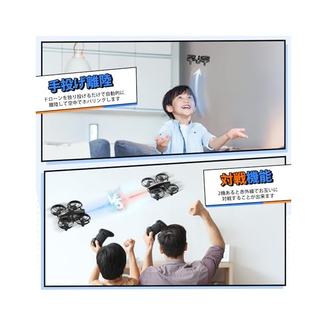 【2台以上で対戦可能な大人気トイドローン】TOMZON 対戦型ドローンは赤外線装置を搭載し、相手のドローンと対戦可能です。ユニークな対戦機能で子どもたちの注目を集め、次世代を担う魅力的なミニドローンです。※対戦機能には2台以上のA24シリーズドローンが必要です。旅行用玩具や誕生日プレゼントに最適です。