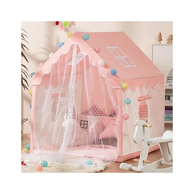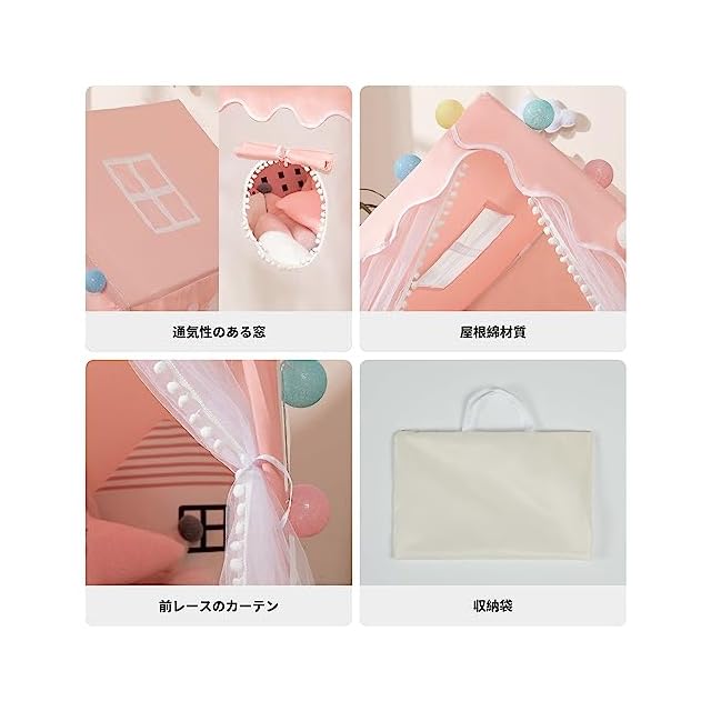 【安全布の材質】長持ちし、割れにくく、無毒、無臭でお子様にも安全な高品質のポリエステル生地を使用しています。このかわいいピンクのテントは女の子のために設計されて、誠意をこめて彼らの王女の夢を実現するのを助けます。