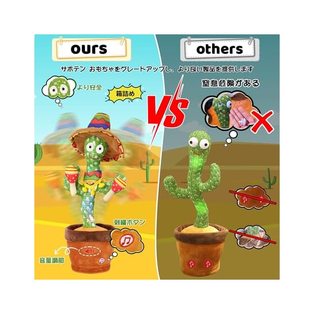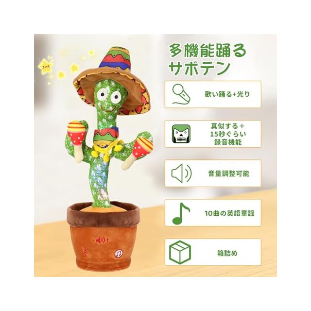 【プレゼントにぴったり】歌い、踊るのものまね サボテン おもちゃです。子供に対して最高の贈り物です。クリスマスや誕生日会などに登場し、幸せな雰囲気を演出することができます。プレゼントとしてだけでなく、お部屋のデコレーションとしてもぴったり!陽気な音楽とダンスは、楽しい雰囲気を作り、クリスマスパーティーを主催するのに非常に適しています。