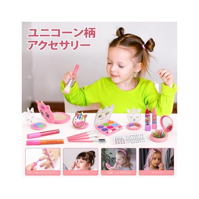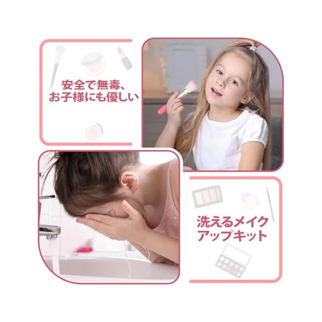 【安全な素材の子供 メイクセット】このキッズ・女の子メイクセットは高品質の材料で作られており、国際的な子供のおもちゃ基準の安全要件を満たしています。 メイクアップは石鹸と水で簡単に落とせ、肌にシミを残しません。 ご使用前に、お子様の皮膚テストを行うことをお勧めします。