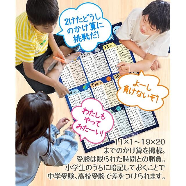 【高度な11〜20の段までを網羅】 ポスターには11の段から20の段までのかけ算が網羅されており、基本の九九を習得したお子様がさらに高度なかけ算を学ぶことができます。段ごとに色分けされているため、どの段を学んでいるのかが一目でわかりやすく、学習の進捗を確認しやすい構成になっています。