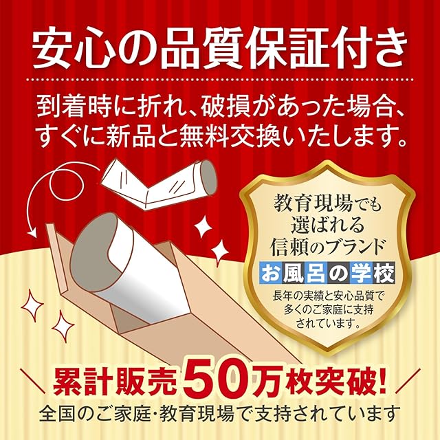 【耐久性と安全性に優れた素材】 このポスターは耐水性があり、お風呂場でも安心して使用できる素材で作られています。これにより、バスタイムを楽しい学びの時間に変えることができます。また、耐久性が高く、長期間使用しても劣化しにくいため、親子で安心して使用できます。長持ちすることで、継続的な学習が可能になります。