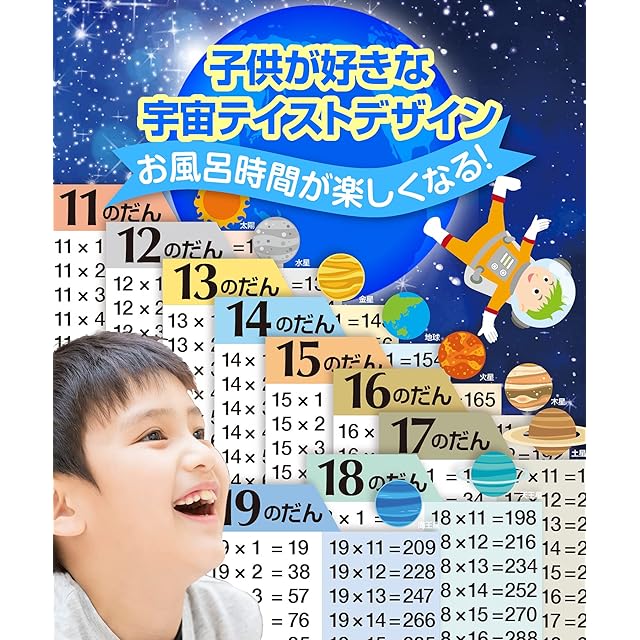 【ユニークな宇宙テーマのデザイン】 ポスター全体が宇宙をテーマにしたデザインで、背景には宇宙飛行士やロケット、星々が描かれています。このデザインは子供たちの興味を引きやすく、学習へのモチベーションを高めます。視覚的に楽しいデザインが、学びの意欲を自然に引き出します。