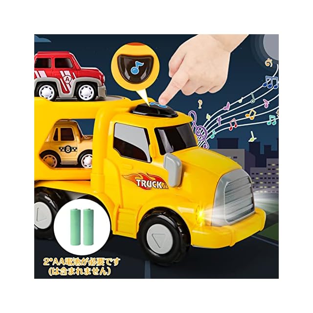 光と音楽付きトラック:男の子 おもちゃのトラックの上にあるボタンを押すと、あなたの子供はそのリアルな音と明るいライトに魅了され、あなたの子供をより没入させます(バッテリーは含まれていません)。