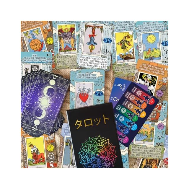 あらゆるレベルの読者に適した汎用性の高いタロットデッキ - アップライトとリバースカードの解説、キーワード、チャクラシンボル、惑星対応、星座関連、エレメンタル対応、そしてリーディングの精度を高めるためのアファメーション付き。