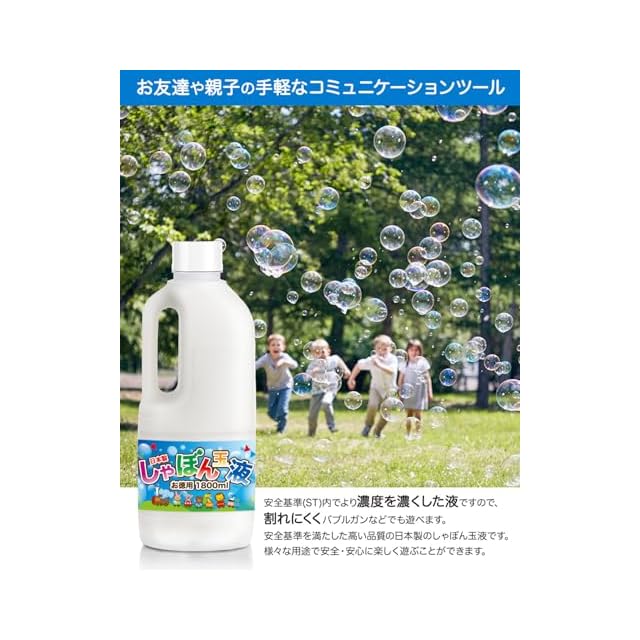 【✅シャボン玉液安全基準適合証明済】信頼の日本製商品です。また安心のシャボン玉液安全基準適合証明済(STマーク)となっております。吹き棒セットと合わせてお買い求めいただければ、すぐに遊ぶことが出来ます!