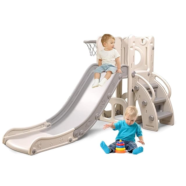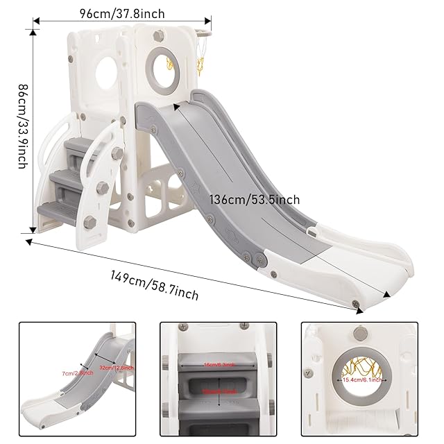 【バスケットボールフープと滑り台の2WAY】 バスケットボールフープ付きの滑り台は、お子様の運動能力や手と目の協応力を鍛え、筋肉の発達を促す、もう一つのエンターテイメントです。 登りやすいステップと滑らかな滑り台が特徴で、子供たちは登ったり滑ったりして楽しむことができます。