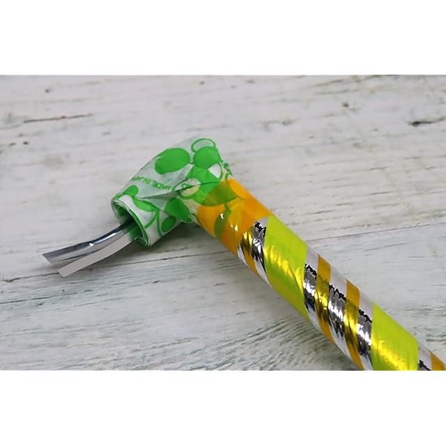 伸ばしたり、縮めたりして遊びます。<br>お子様の遊び道具として最適、また、息を多量に吹き込むため呼吸のトレーニングとしてもオススメです。<br>音は出ません。