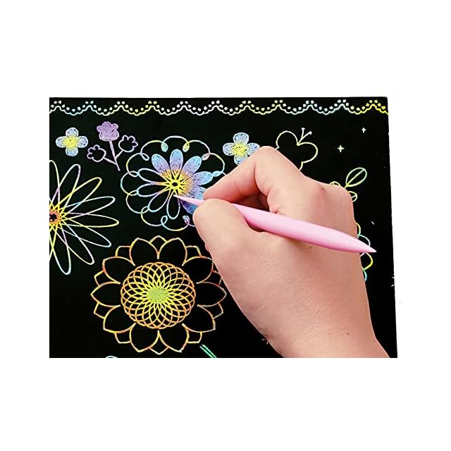 不思議で可愛い図案がかける「くるくる定規」と、キラキラが美しい「スクラッチシート」のセット。