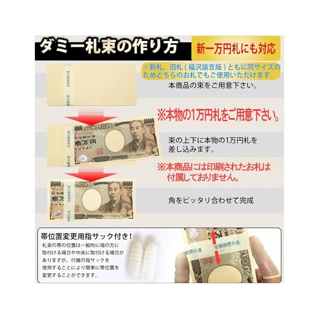 ※新一万円札にも対応!新札、旧札(福沢諭吉版)共に同サイズです。(76mm×160mm) ※札帯専用特殊紙使用!本品の帯紙は金融機関で実際に扱われている札帯専用の特殊紙を使用しています。
