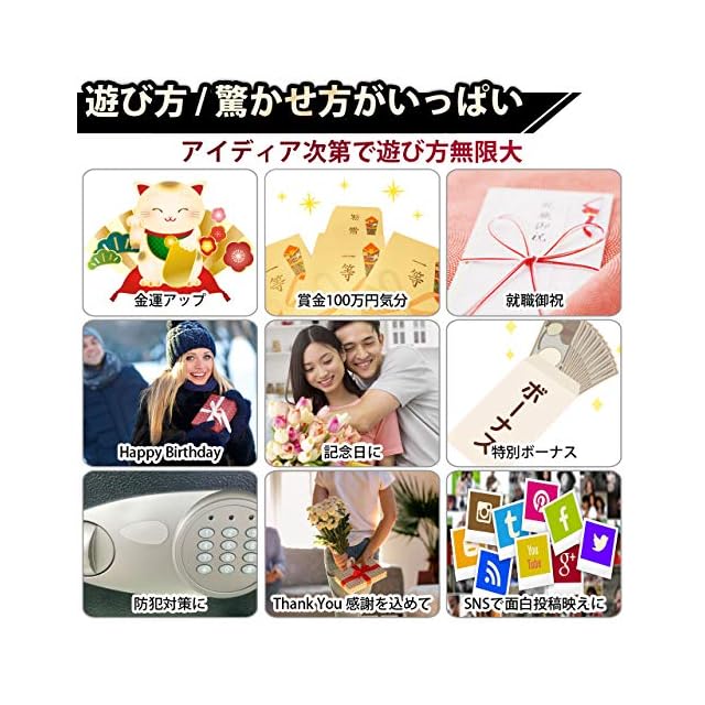 入学、就職、お祝い、記念日、贈り物、賞金、ボーナス、ジョークグッズ、YouTube、撮影にもご活用頂けます。是非お手に取って1000万円分の札束の存在感を味わって下さい。※本体用紙は無地の紙束です