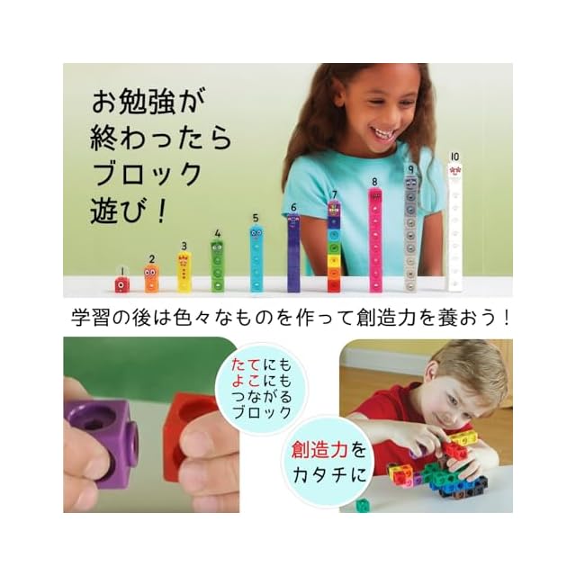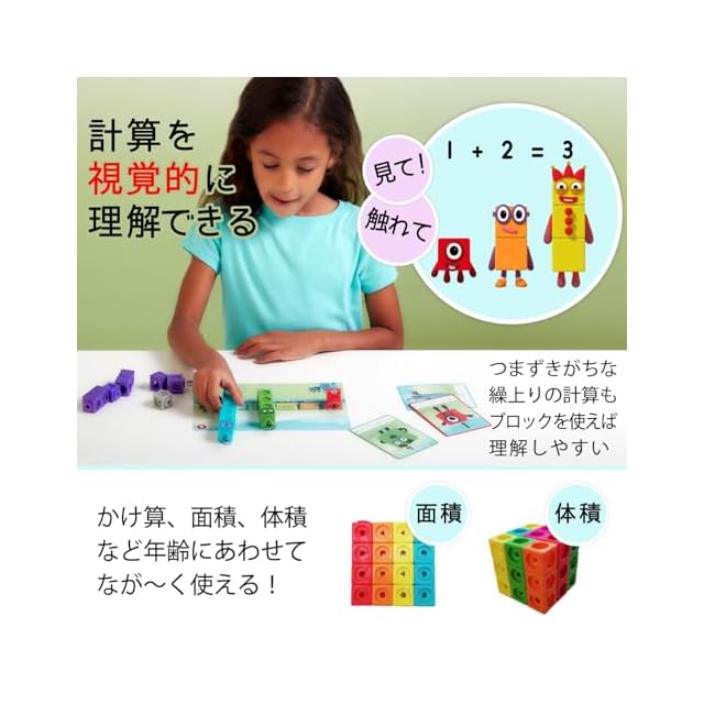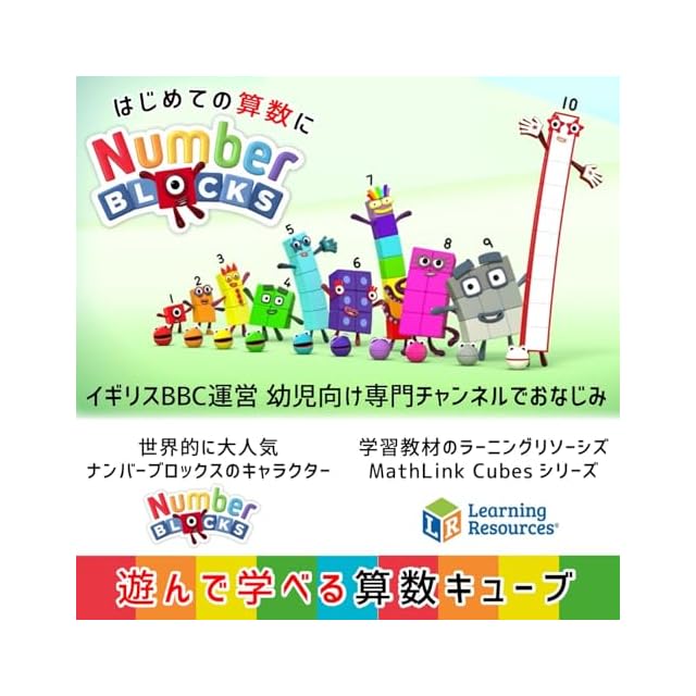 世界100カ国以上で愛されるラーニングリソーシズ (Learning Resources) 社の算数キューブ MathLinkシリーズ。イギリスBBC運営の幼児向け専門チャンネル「ナンバーブロックス (Numberblocks)」のマスリンクキューブに日本語クイックスタートガイドやアクティビティカードの遊び方や日本語訳が見られるQRコードが付いて登場!世界的に大人気のユニークでかわいいキャラクターたちの紹介などが日本語で書かれたガイド付きで、もっと分かりやすく、楽しく、算数学習!