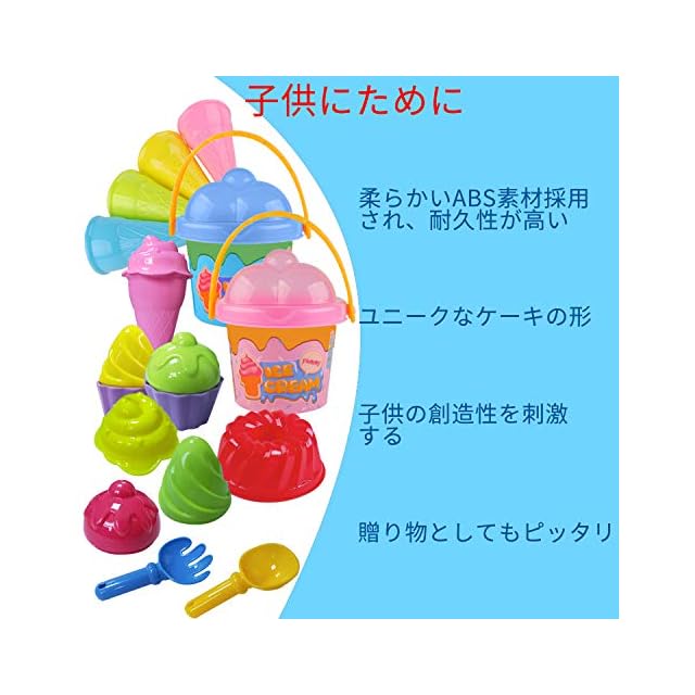 ケーキとアイスクリームのプレイセット:一緒にアイスクリームとケーキパーティーを作ろう!ビーチ、サンドボックスからスノーまで! 屋内から屋外まで、最高のグレートトイパック! この18点砂遊びおもちゃを使って、お子様がビーチで楽しく過ごせるようにするだけでなく、さまざまなクールなアイスクリーム、アイスクリームコーン、カップケーキ、さらにはマフィンまで作ることができます。