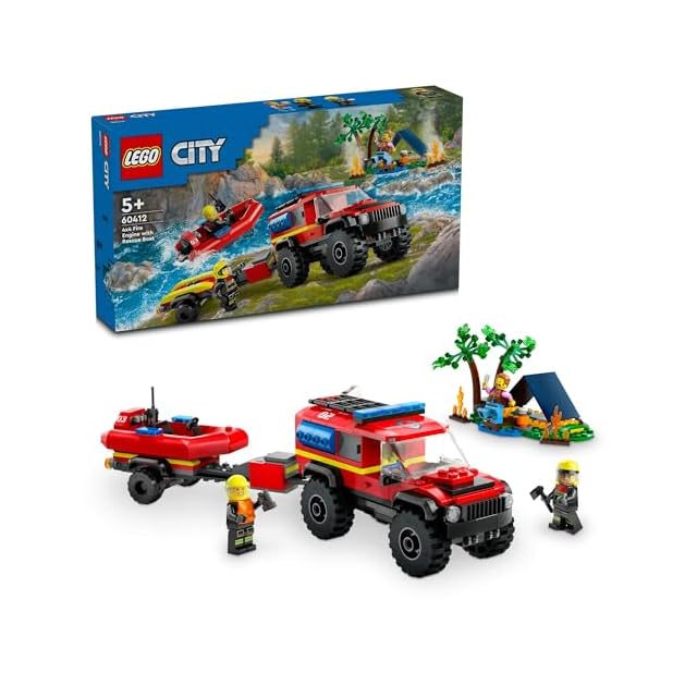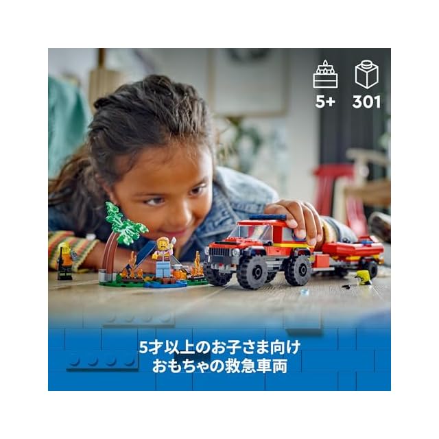 レゴ(LEGO) シティ 4WD消防車とレスキューボート おもちゃ 玩具 誕生日 プレゼント ブロック 知育 男の子 女の子 子供 5歳 6歳 7歳 8歳 乗り物 車 ミニカー 60412 | つむぎ屋