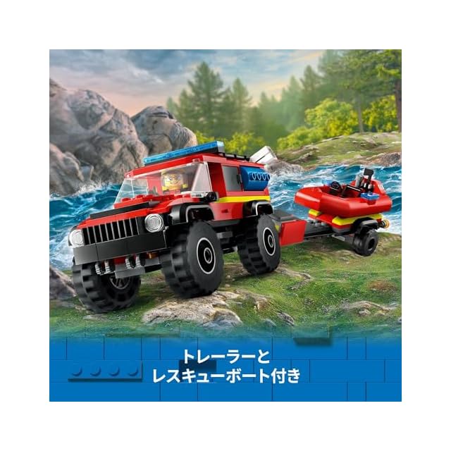 レスキューミッションののりもの – レゴシティ 4WD消防車とレスキューボート セットなら、険しい道も激しい川もへっちゃらどこへでも救助に向かうよ(対象年齢:5才以上)