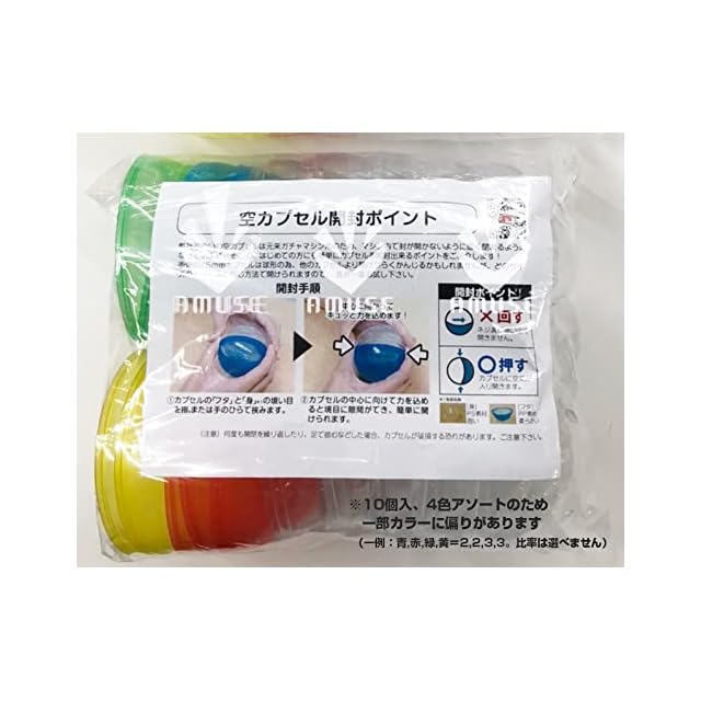 ※カラー配分は、ほぼ均等です(多少差異あり) ガチャマシン内で開いてしまわないように、キツ目に閉まる設計です。特に寒い季節、保管場所の状態でより開封しづらくなる場合があります。PC環境により、カプセルの写真と実際の色目が違って見える場合がございます。あらかじめご了承ください。