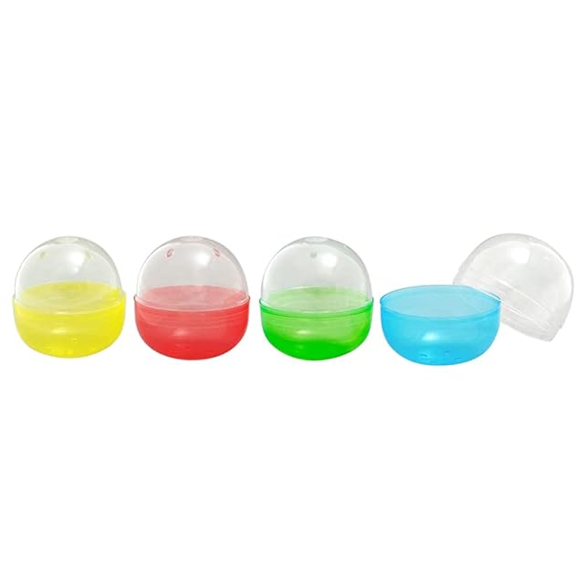 直径65mmのガチャガチャ・ガチャポン用空カプセル新品、カラフルな4色アソート(赤青黄緑のミックス)、半透明タイプです。