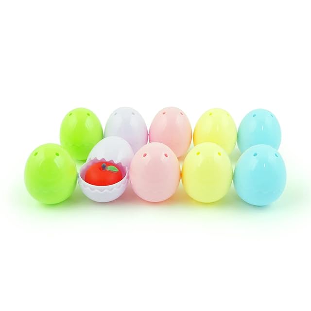 プラスチック製のパカッ!とたまごカプセル(ギザギザカット) 50個 おもちゃ付き。 おもちゃがランダムで中に入っているから、エッグハントなどにもすぐに使えます。 どんなおもちゃが入っているかは、開けてからのお楽しみ!