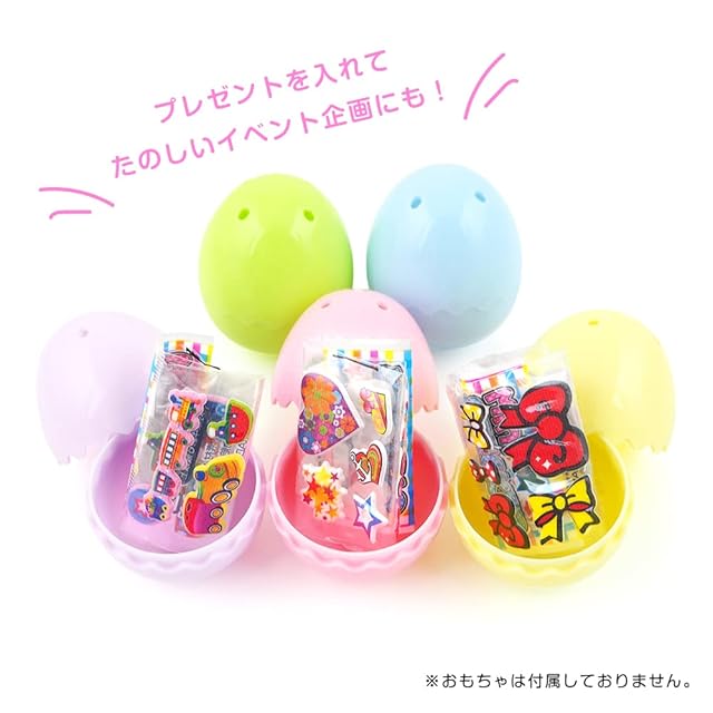プラスチック製のたまご型カプセル、新色のベビーカラー5色10個(各色2個ずつ)セットです。 波型(ギザギザ)になってカワイイ。カチッとピッタリはまるから、上下で違うカラーに合わせてもおしゃれ。 年々盛り上がりをみせる、「イースターイベント」! このたまごカプセルの表面に油性ペンで色を塗ったり、シールを貼ったり… 柔らかいイメージの可愛いベビーパステルカラーのたまごカプセルでイースターエッグを楽しんでみませんか? おもちゃを詰めて、エッグハンティングにも使えますよ! みんなでハッピーイースター!!