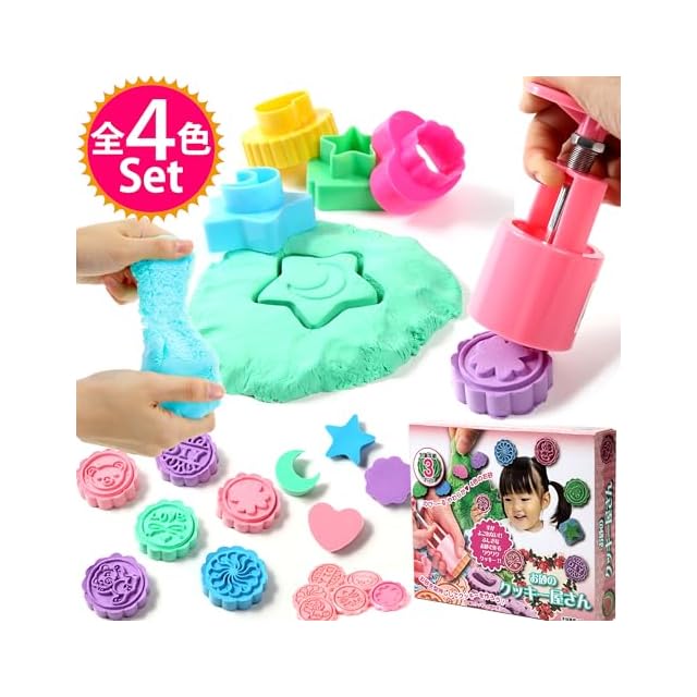 型押しのクッキーメーカーでポン!っとカラフルなお砂のクッキーが作れます!DIY感覚で作った不思議なクッキーは崩れにくいのでおままごとにも最適な砂遊びセット!粘土の様にキネティックな作品も作れます!