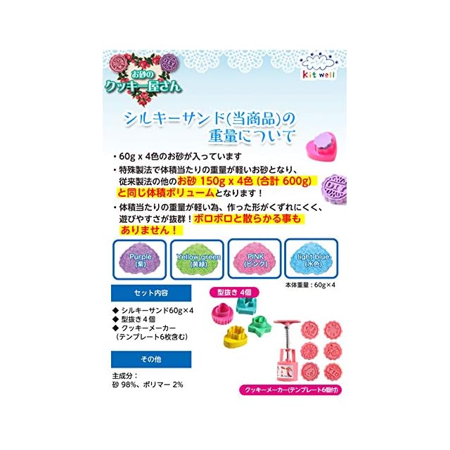商品名:Kitwellキットウェル シルキーサンド クッキー屋さん セット 粘土 幼児 室内 お砂場 砂遊び 砂粘土