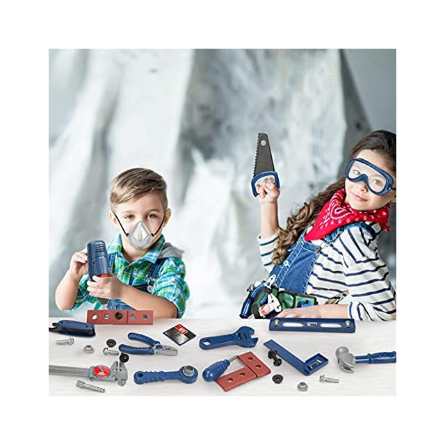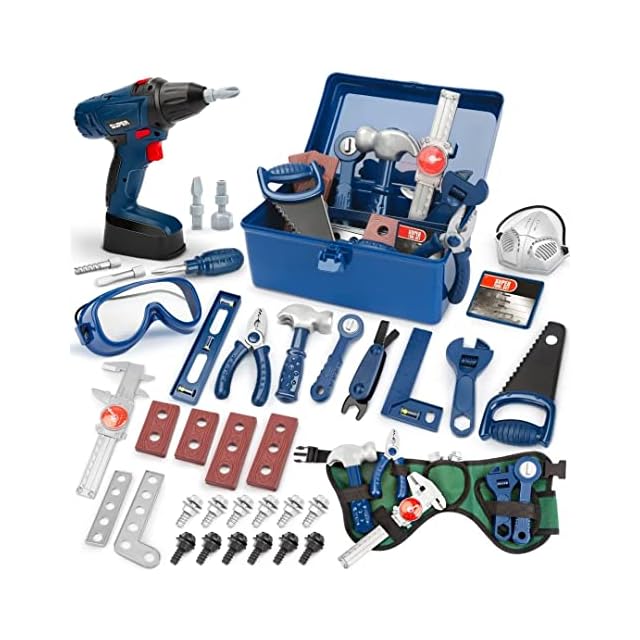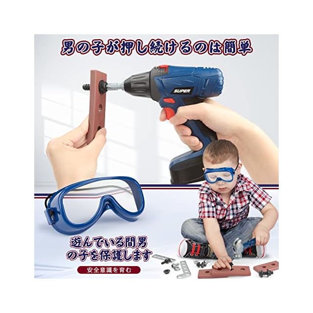【組み立て おもちゃ には以下が含まれます】ツールボックス、電子ドリル、ツールベルト、ドライバー、ハンマー、安全ゴーグル、ワークカード、6つのプレイボード、12のボルト、12のナットなどが含まれます。これはビルド&プレイツールキットの完全なツールキットです。重量:0.905kg