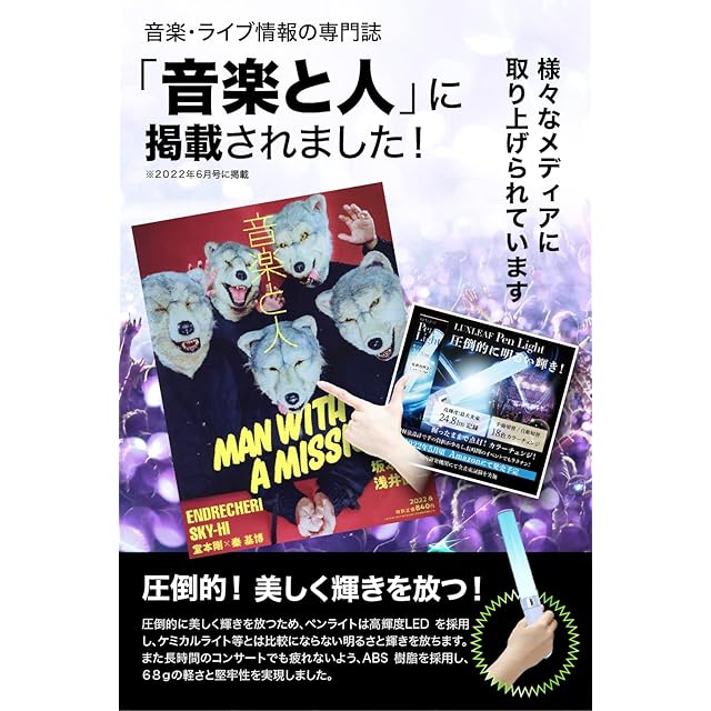 【音楽・ライブ情報専門誌 掲載モデル】音楽・ライブ情報専門誌「音楽と人」掲載モデルのペンライトです。