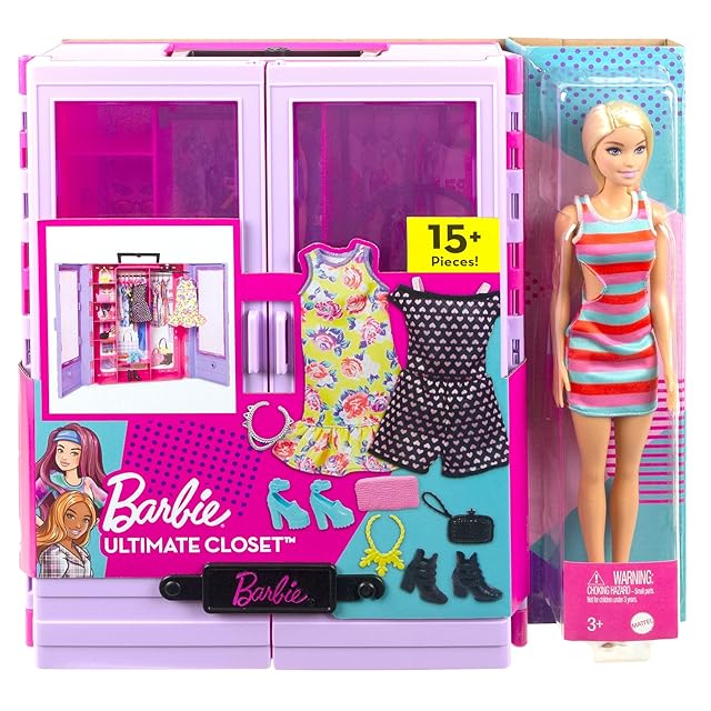 商品名:バービー(Barbie) バービーとパープルのクローゼット コーディネートいろいろ! ドール&ファッションセット バービー人形 【着せ替え人形】【ドール&アクセサリー】 【3才~】 HJL66_J