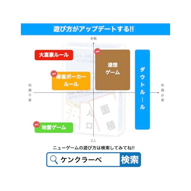 ✅【 ゲーム性 】「大富豪」ルールでは 人口 ・ 面積でカードの強さが一変!! 「ダウト」ルールでは 知識 ・ 推測 ・ 戦略をフル活用して、相手に勝て!