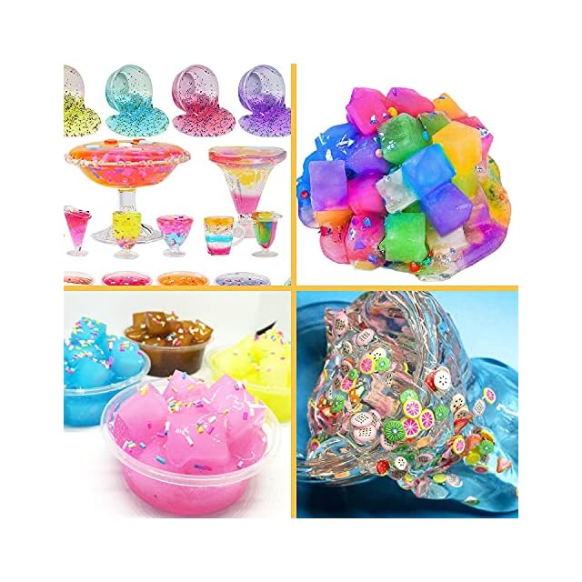 UQTOO スライム キット 水晶粘土 DIY ねんど セット おもちゃ 手作りツール 金魚鉢ビーズ 果物切片 カラフルフォーム紙吹雪 粘土遊び 含有16個入りふわふわクリスタル粘土 slime | つむぎ屋