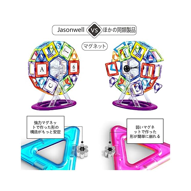 商品名:Jasonwell 108pcs マグネットブロック 磁気おもちゃ マグネットおもちゃ 磁石ブロック 子供 知育玩具 幼児 に おもちゃ 女の子 おもちゃ 日本語バッケージ 磁石玩具 立体パズル ゲーム モデルDIY 積み木 ブロック おもちゃ キーズ 誕生日 ギフト クリスマス プレゼント 贈り物【数字カードとアルファベットカードなど含め】