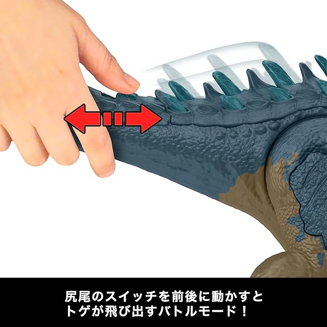 【内容】背中のボタンを前後に動かすと、ほえてあばれるアロサウルスの迫力満点のフィギュア。リアルな見た目とサウンドの他、背中のトゲが飛び出してバトルモードを楽しめます。フィギュアと連動する無料アプリ「ジュラシック・ワールド・プレイ」に対応しており、DNAコードをスマートフォンでスキャンすることで恐竜をコレクションできます。