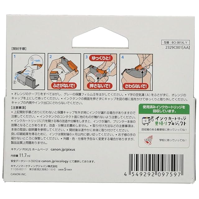 商品名:キヤノン Canon 純正インクカートリッジ BCI-381XLY イエロー 大容量タイプ