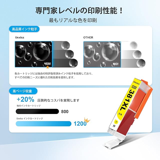 【最新ICチップ】:キャノン 用 インク 380 381はキヤノンプリンターのために開発されたピーク性能は、よりプリンターとシームレスに連携し、プリンター内部への負荷が小さく、性能を十分に発揮することができます。