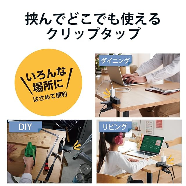 タップを常設できないダイニングテーブルなどでテレワークや宿題をする際に、一時的に設置して利用するのに便利です。
