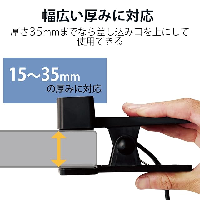 15mm~35mmの厚さの板に設置が可能です。設置する際は差込口が上向きになるようにしてください。