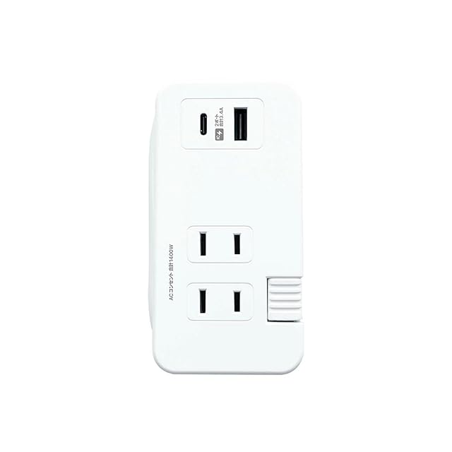 最大出力Type-C5V3A、USB-A5V2.4A、2ポート合計5V3.4A。ACコンセントは3口合計1400Wまで対応。