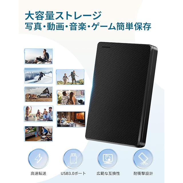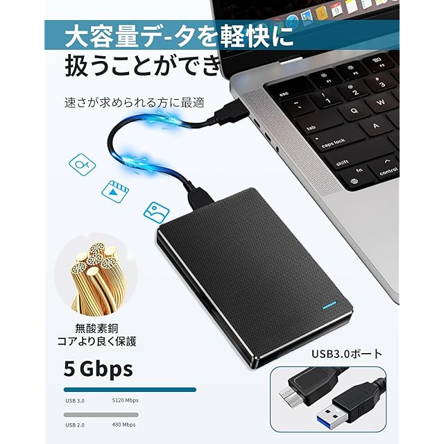 【超高速データ転送】高速USB 3.0対応 - スムーズなデータ転送で効率アップ USB 3.0ポートに対応しており、従来のUSB 2.0に比べて最大10倍のスピードでデータを転送。大容量ファイルも素早く移動でき、外付けHDDとして非常に便利です。時間を節約して作業を快適にします。 - ソフトウェアをインストールする必要はありません。プラグインするだけ。ドライブのすぐに使用できます。ハードディスクチップはアルミニウム混信防止層で包まれており、熱放散を向上させ、データを保護します