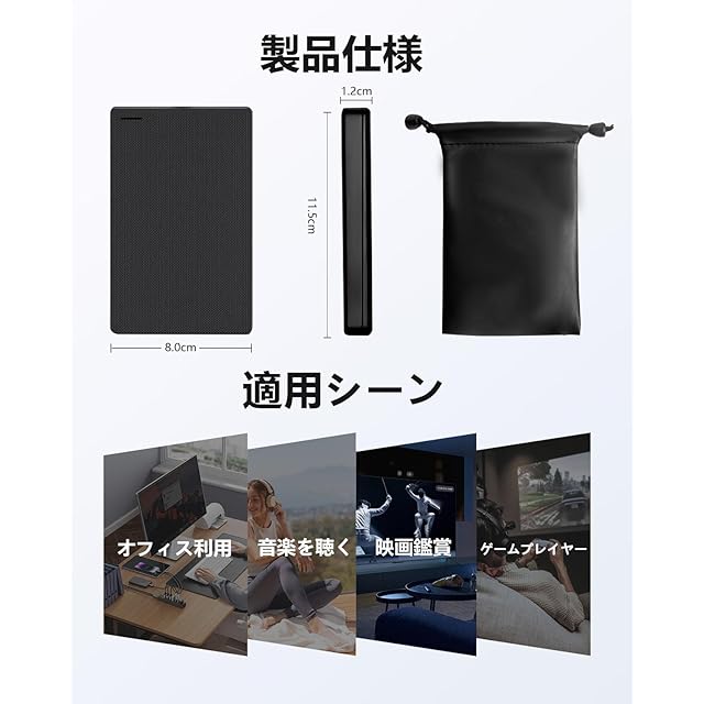 【振動防止や衝突防止です,美しく耐久性のあるデザインです】防震と沖突、hddポータブル2.5インチ機械式ハードドライブ、強い耐沖撃能力を持って、放熱を保護します。スタイリッシュなブラックケースには傷がつきにくい表面処理を施しています。丈夫なアルミケースがデータを守ります。