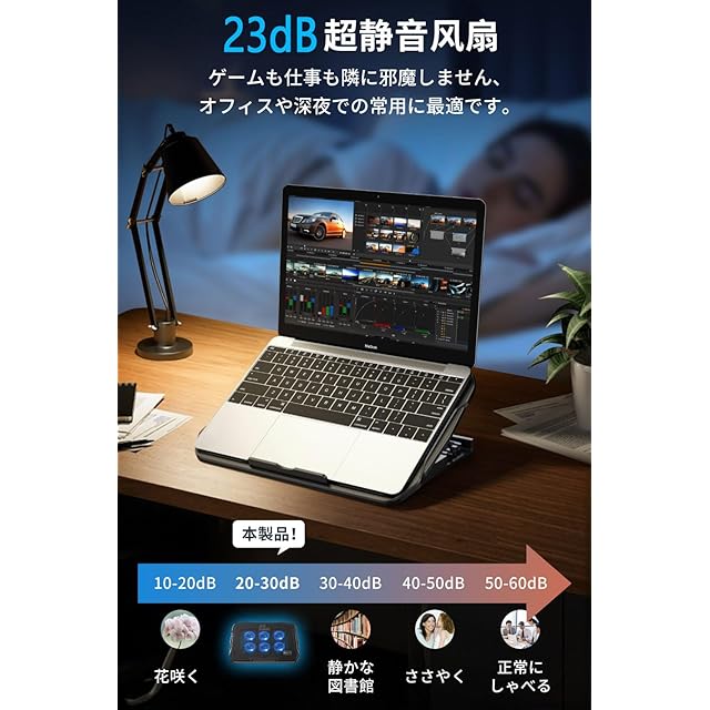 【軽量設計で持ち運びに便利】ホームオフィス、ゲームのセットアップ、旅行中など、さまざまな環境で使用できるこの冷却パッドは、どんな条件下でもノートパソコンを涼しく効率的に保ちます。